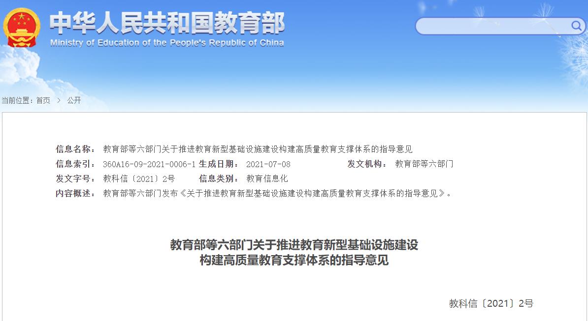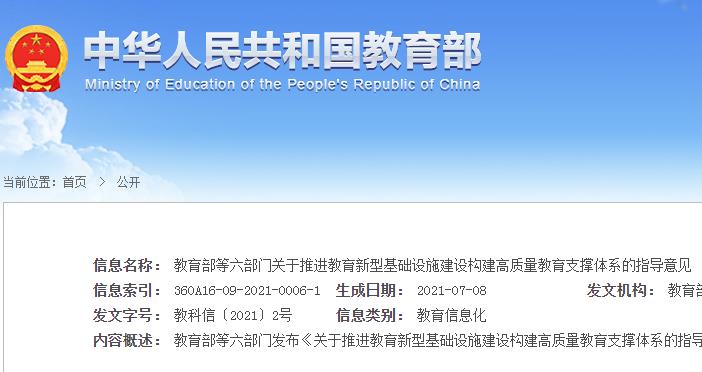 教育部等六部门关于推进教育新型基础设施建设构建高质量教育支撑体系的指导意见