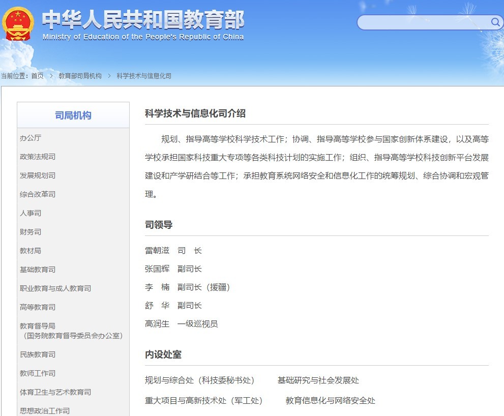 教育部科技司更名为科学技术与信息化司