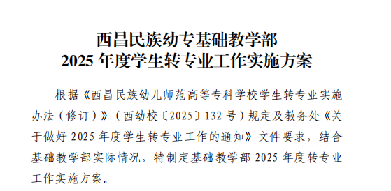 西昌民族幼专 基础教学部 2025年度学生转专业工作实施方案
