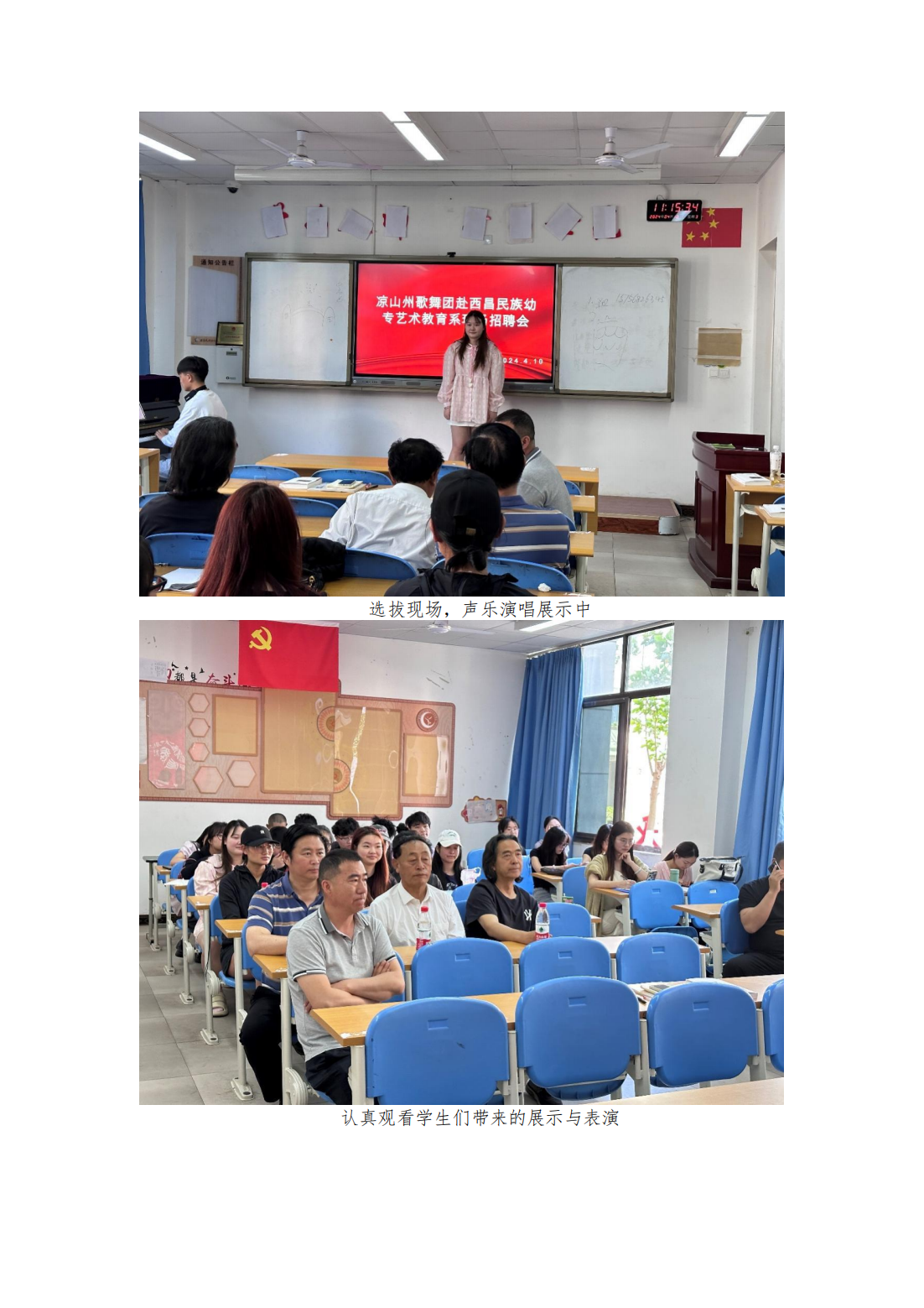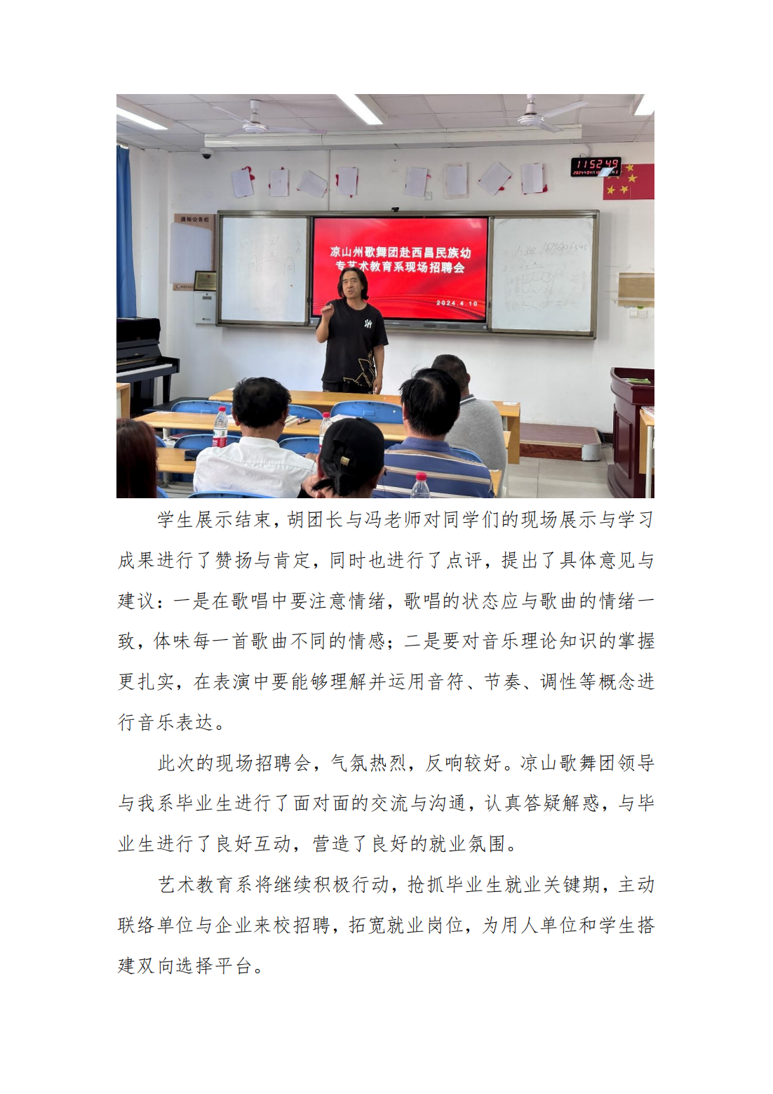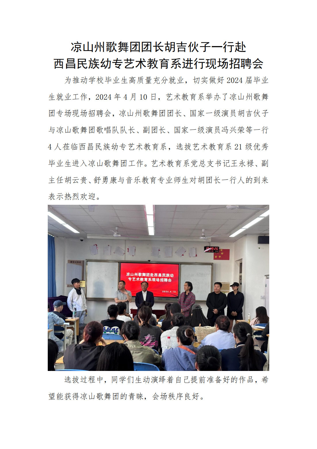 凉山州歌舞团团长胡吉伙子一行赴 西昌民族幼专艺术教育系进行现场招聘会