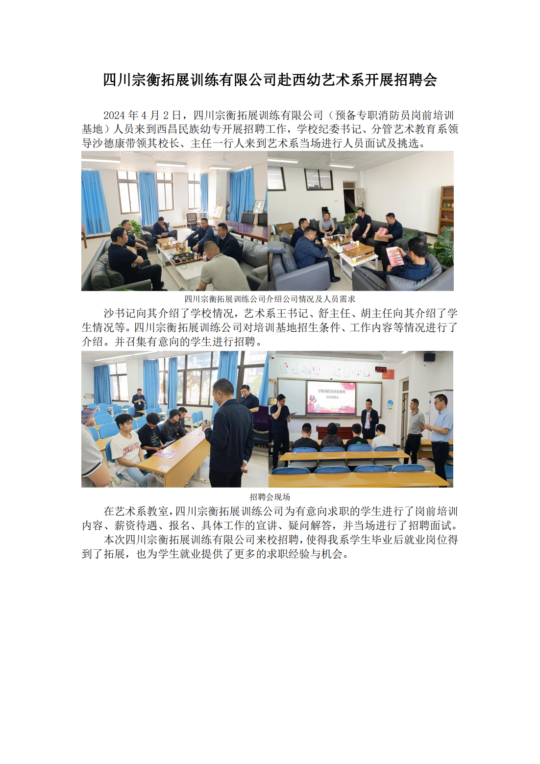 四川宗衡拓展训练有限公司赴西幼艺术系开展招聘会