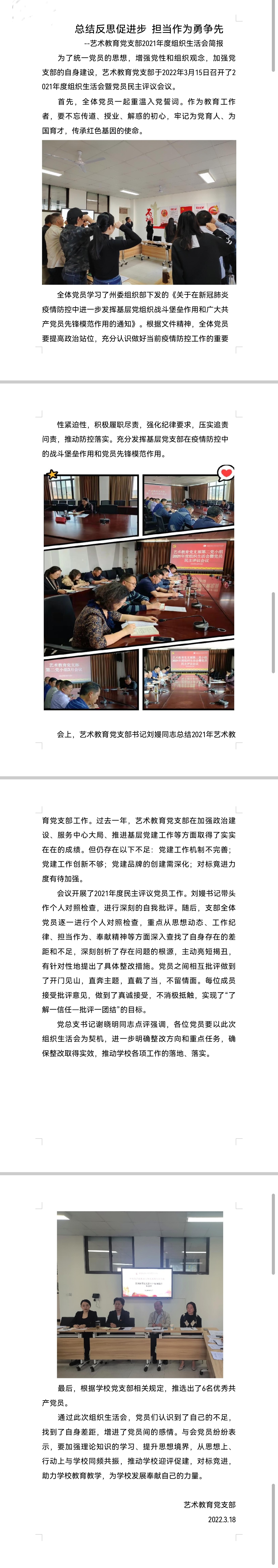 总结反思促进步 担当作为勇争先——艺术教育党支部2021年度组织生活会简报