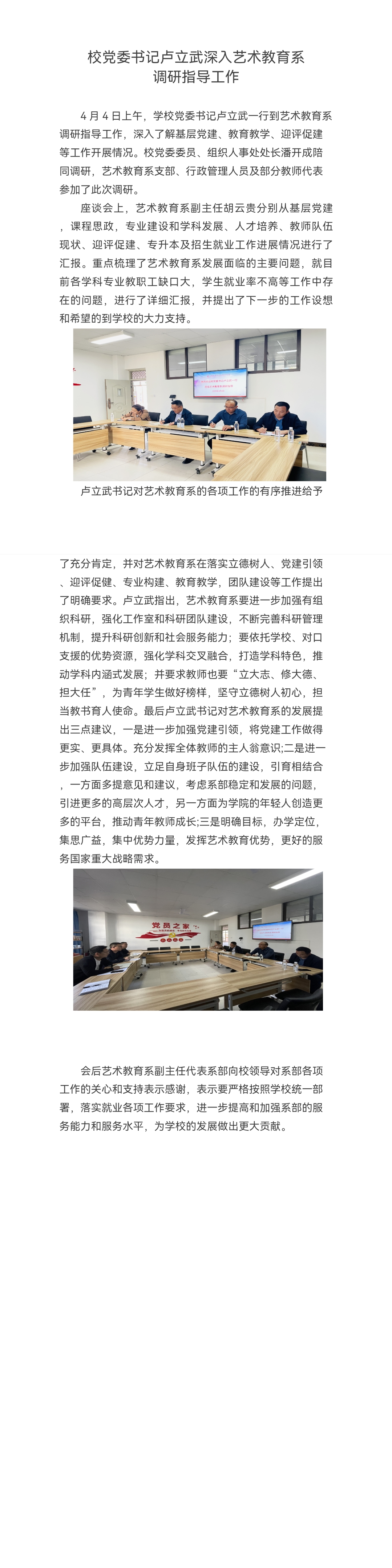 校党委书记卢立武深入艺术教育系 调研指导工作