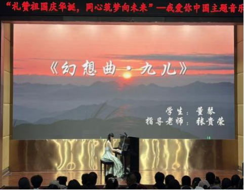 9月28日晚,我校艺术教育系2023级与2024级音乐教育专业学生在学术报告厅A厅举办了“礼赞祖国庆华诞,同心筑梦向未来——我爱你中国”主题音乐会。艺术教育系师生共同参与音乐会。