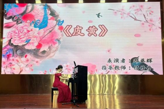 当旋律步入“逐光前行,声动未来”篇章,音乐便成了奔向未来的号角。钢琴弹唱《你来了》以温柔曲调传递希望;钢琴独奏《谷粒飞舞》用欢快节奏奏响奋斗乐章;配乐朗诵《美丽中国》将文字与旋律交织,描绘出祖国大地的壮阔与生机;钢琴独奏《皮黄》巧妙融合京剧元素,让传统艺术焕发新彩;音乐情景剧《亲爱的你啊》则以生动演绎,展现出新时代青年的青春活力。