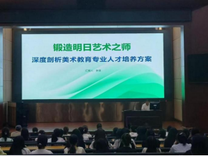 接着,美术教育学科带头人张章副教授开展了《深入剖析2024级美术教育专业人才培养方案》的讲座。他简要介绍了自己的教育背景和工作经验,然后详细解读了2024级美术教育人才培养方案,帮助同学们更好规划未来的学习路径和职业发展方向。张副教授还强调,美术教育不仅仅是技术的训练,更是人文精神的传承。他希望同学们在未来的学习过程中,不仅要关注技艺的提升,更要注重审美能力和创新思维的培养。