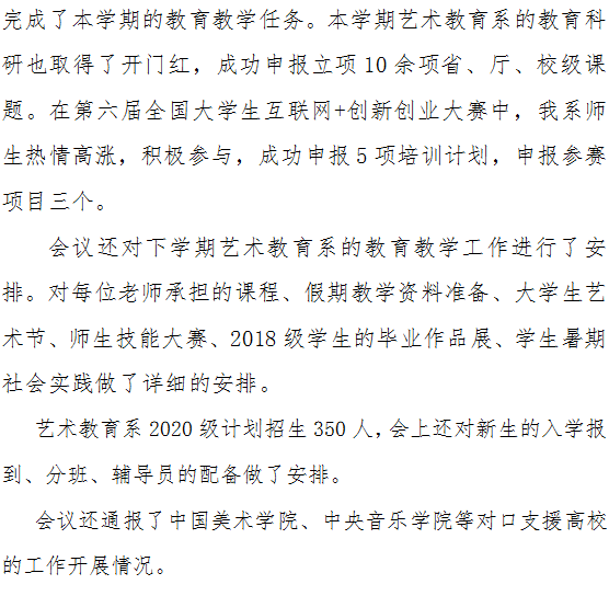 艺术教育系2019-2020学年春季学期期末工作总结会