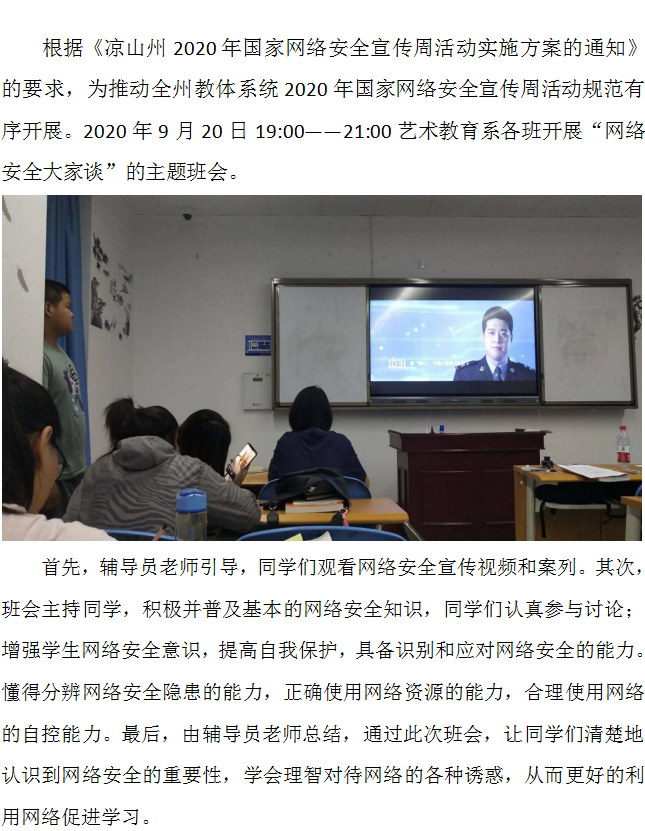 艺术教育系开展2020年秋季学期关于网络安全的学习