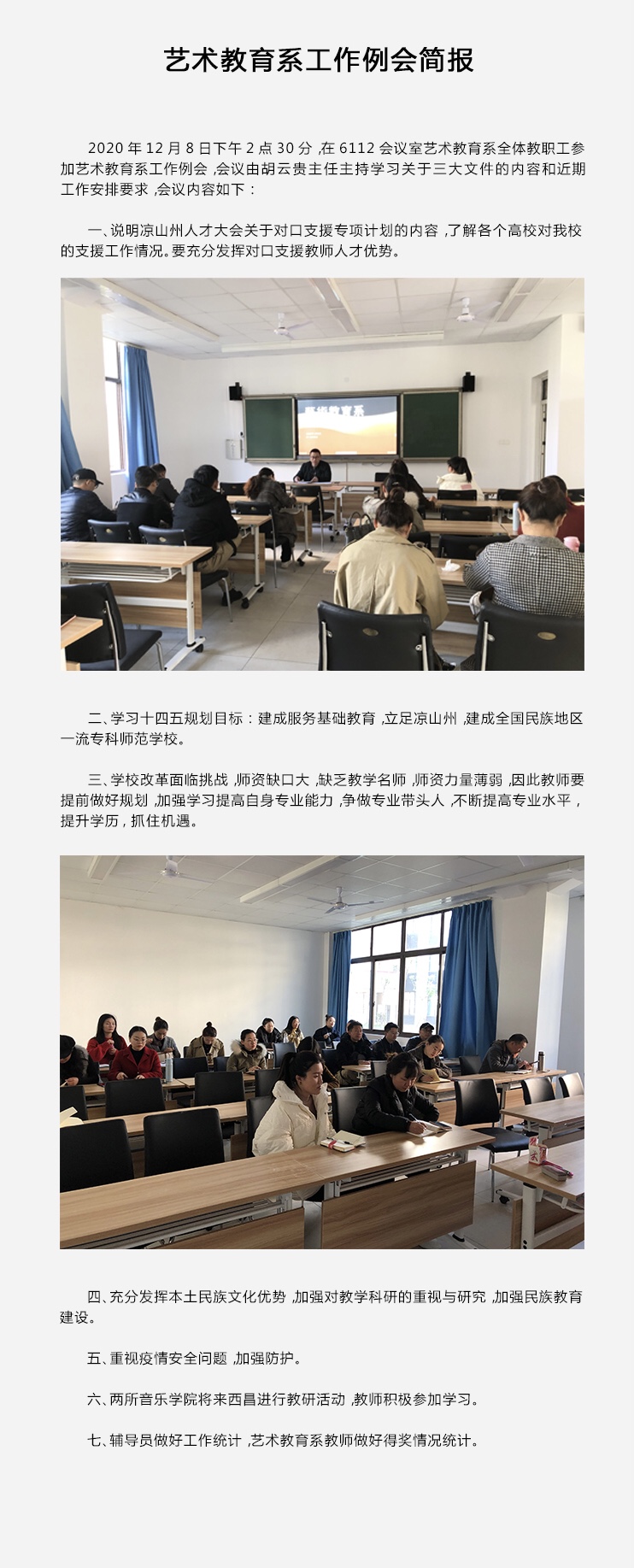 202012月8日艺术教育系工作例会简报