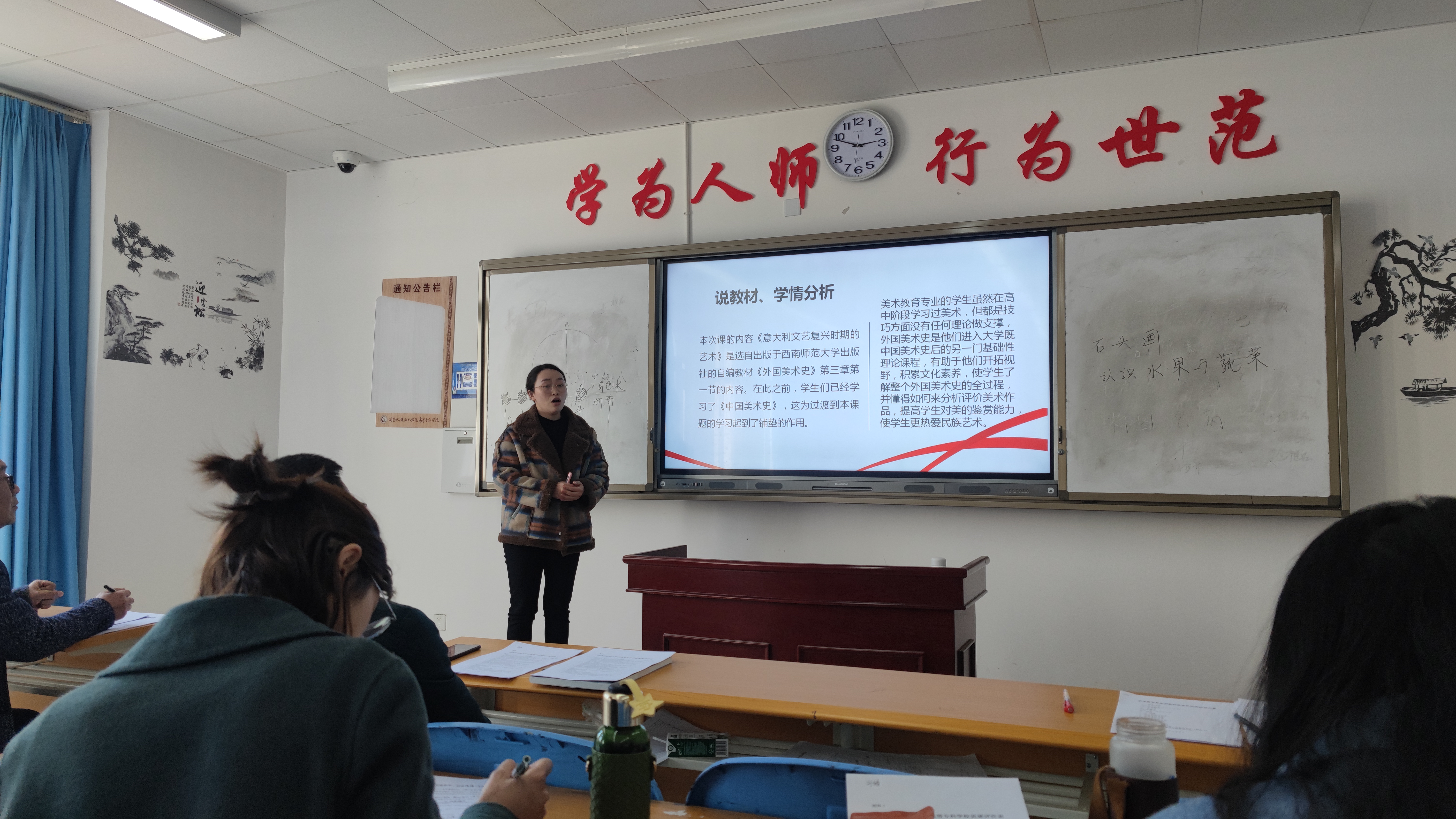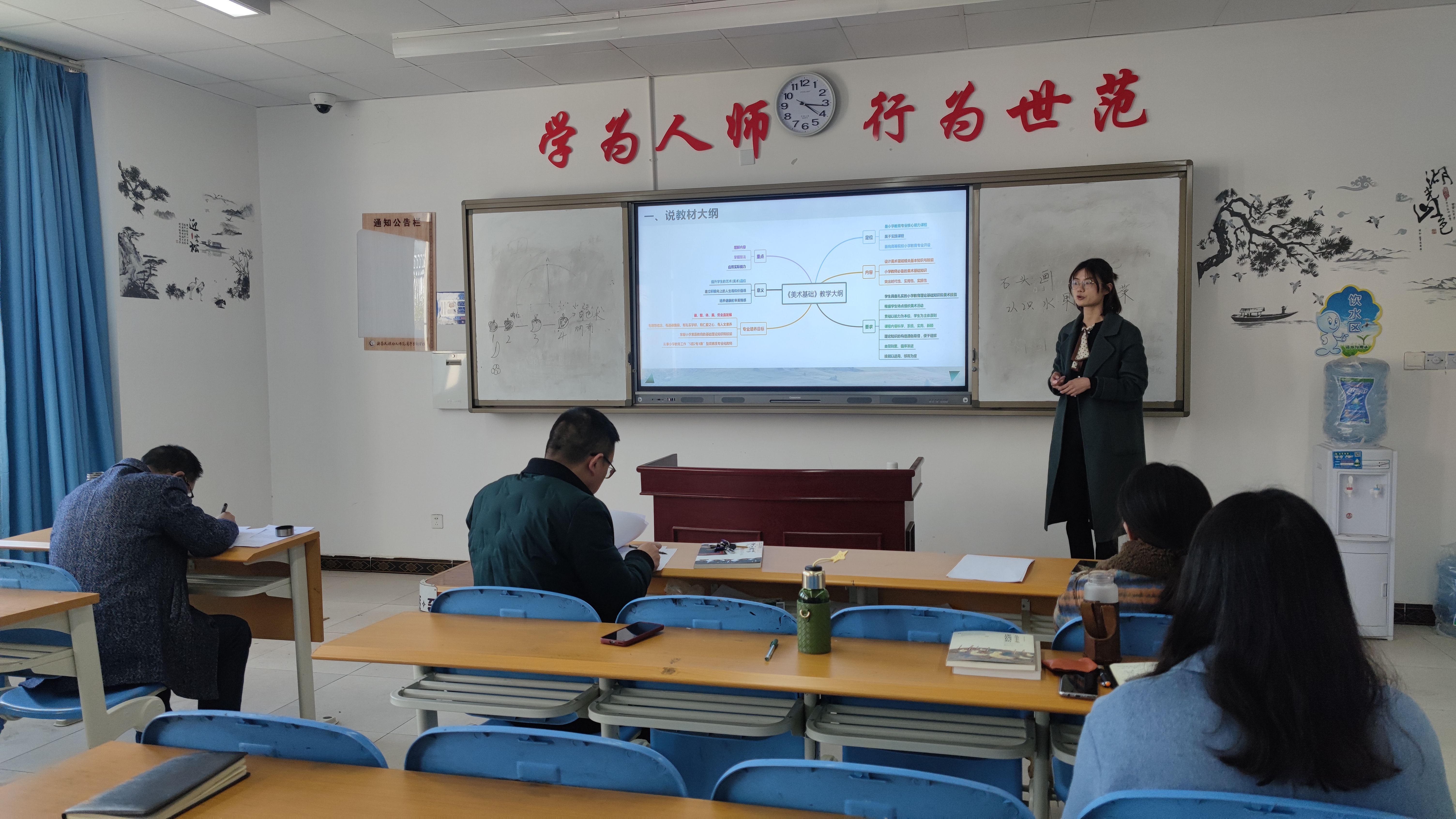 美术教研室参与说课的老师有:胡云贵、张章、刘嫚、秦瑶、曾品鉴、孙荣、胡小强七位老师。