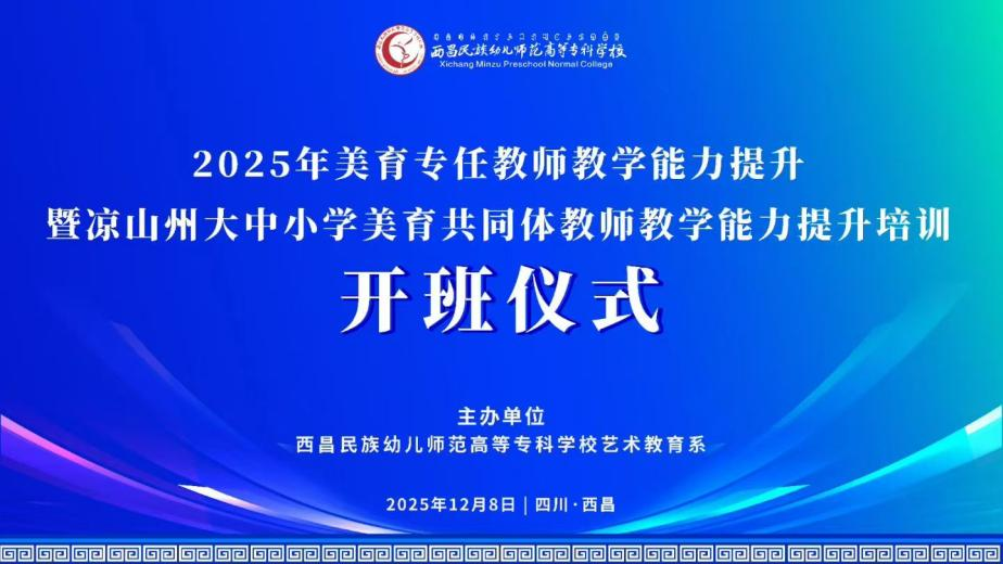为推动区域美育教育高质量发展,12月8日至9日,西昌民族幼专成功举办2025年美育专任教师教学能力提升培训暨凉山州大中小学美育共同体教师教学能力提升培训。来自我校及凉山州大中小学美育共同体成员单位的60名美育教师齐聚一堂,以“大师课+专题研修”的形式,开启了一场聚焦专业成长与教学提质的美育盛宴。