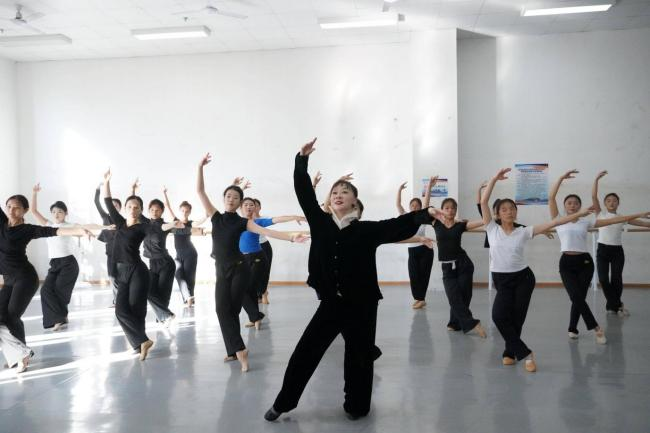 本次培训中,舞蹈与美术类研修同样亮点纷呈。舞蹈类参训教师在图书馆报告厅聆听了阿坝师范学院巴斯基副教授关于“新时代舞蹈创作的意义”(以第十届荷花奖作品“天绘”为例)、四川师范大学乔琦副教授关于“民族民间舞的当代思忖”的专题讲座,并在四川师范大学袁媛教授的指导下,于艺术楼 Y1013 开展民族民间舞运用与实践训练,进一步提升民族舞蹈教学与创作能力。