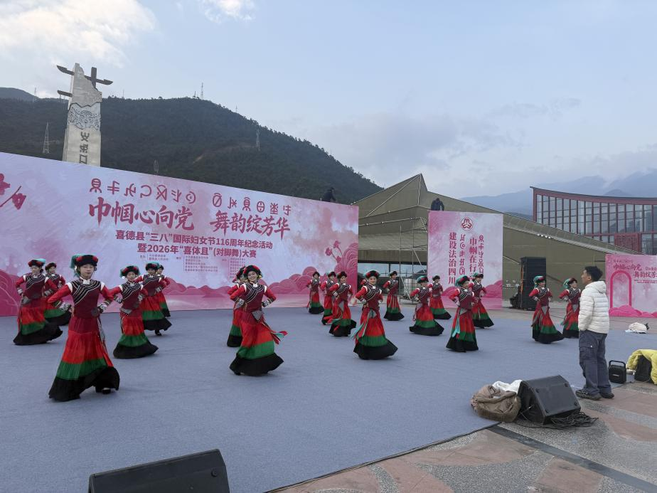 为切实推动非物质文化遗产活态传承,近日,我校选派舞蹈专业学生参加2026年喜德县“喜体且”(对脚舞)专项展演活动。活动以“巾帼心向党 舞韵绽芳华”为主题,以“课堂+舞台+田野”的实践模式,将专业教学与地方文化传承深度融合,取得良好育人成效和社会反响。