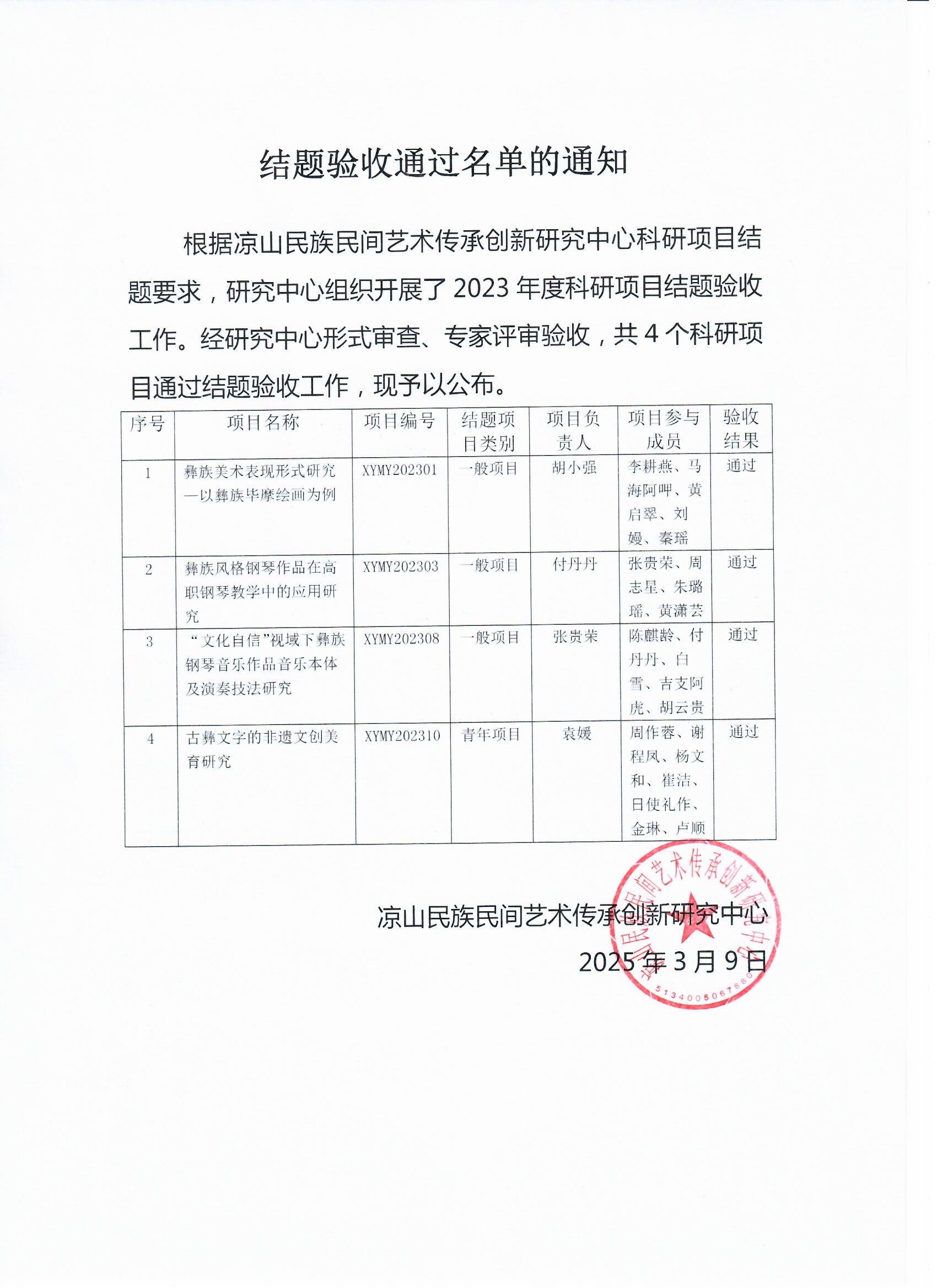 附件:凉山民族民间艺术传承创新研究中心关于2023年度科研项目结题验收通过名单的通知.jpg