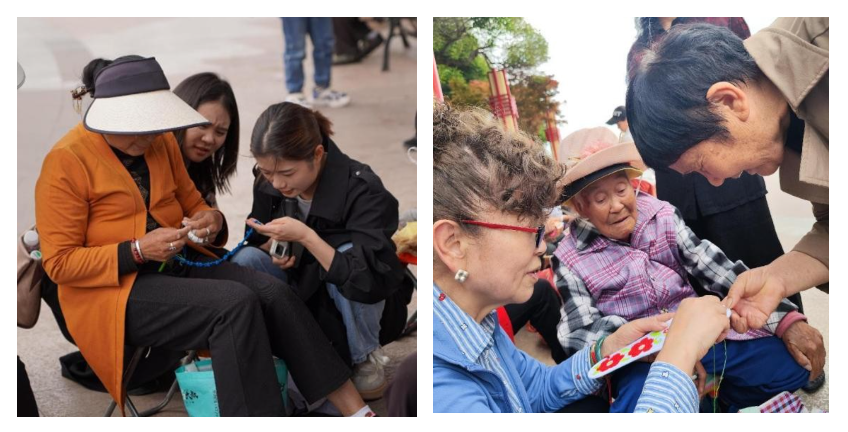 调研团队还前往了会东县中心广场,观摩学习广场中绣娘们的制作。