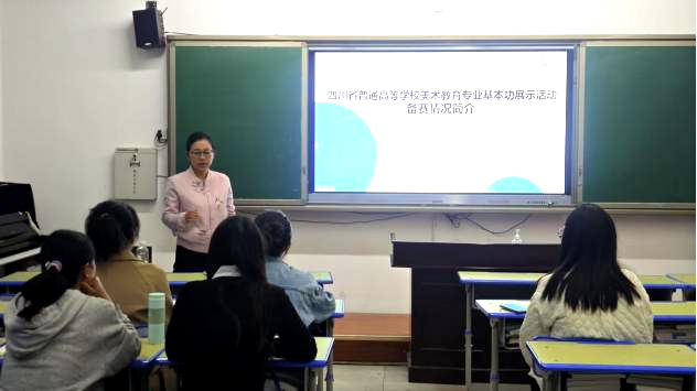 李彦瑾副教授此次到访,对《四川省第五届普通高等学校美术教育专业教师和学生基本功展示》竞赛项目进行深度剖析。她结合自身丰富的获奖经历,针对竞赛项目中的微课展示、专业技能展示、人文素养这三项关键内容,进行了细致的赛况分析,并给出了切实可行的备赛建议。特别是在微课教学方面,她的讲解深入浅出,让美术教育专业、视觉传达设计专业的师生们对竞赛有了更全面、更深入的认识,为师生们带来了专业且实用的竞赛指导。