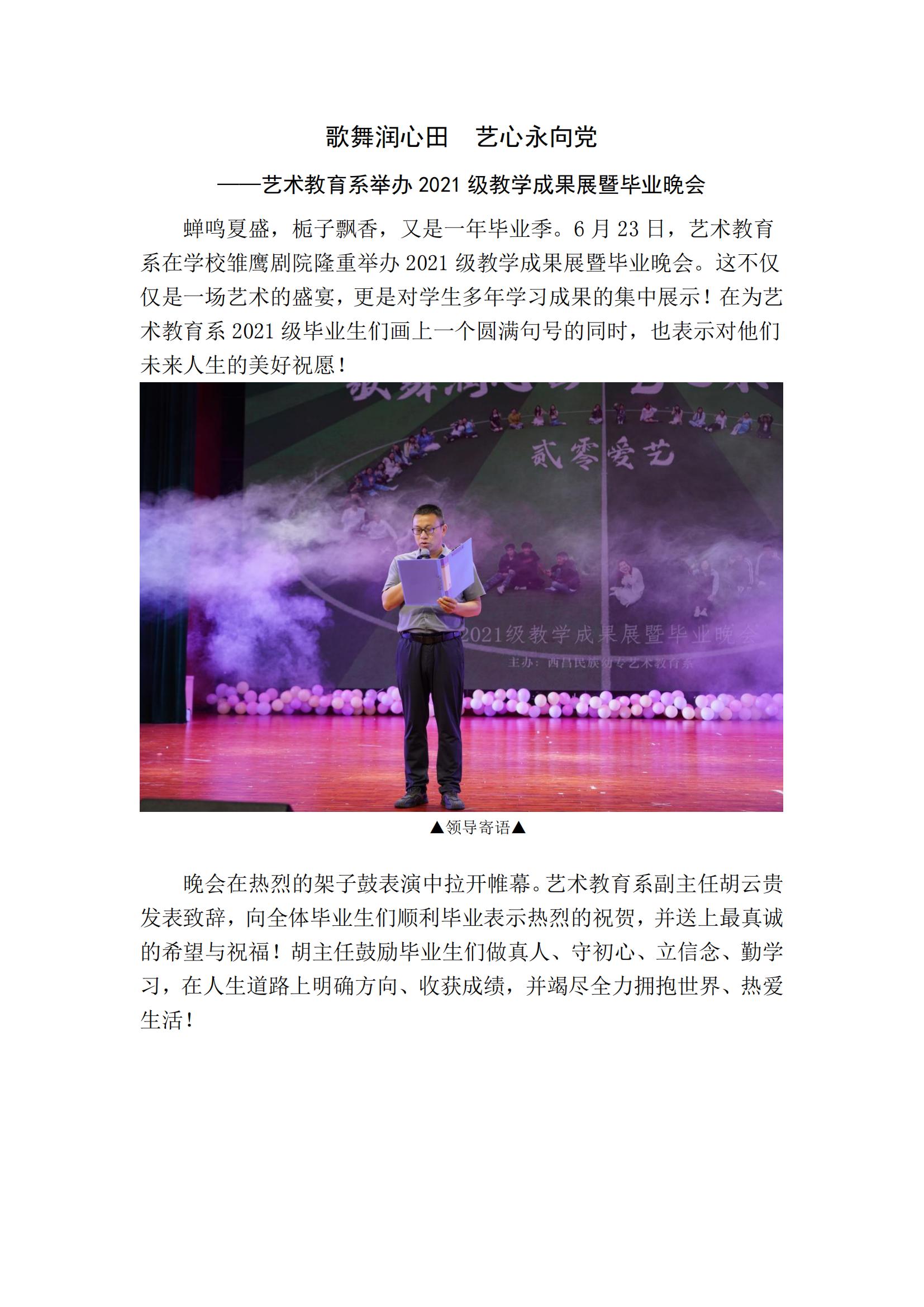 歌舞润心田 艺心永向党 ——艺术教育系举办2021级教学成果展暨毕业晚会