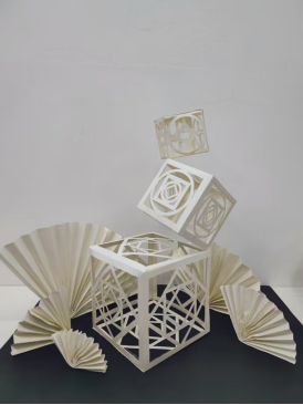 此次结课展的作品题材丰富多样,涵盖了几何抽象图形、色彩情感表达、立体空间构建等多个领域,充分展现了同学们对构成基础理论的深刻理解与独特的创意表达。同学们通过点、线、面的巧妙组合,搭配鲜明和谐或强烈对比的色彩,以及运用各种材料构建出富有层次感和节奏感的立体作品,不仅在形式上给人以美的享受,更在创意和内涵上展现了当代大学生的创新思维和对生活的细致观察。