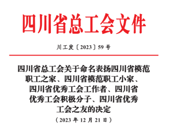 根据四川省总工会《四川省总工会关于命名表扬四川省模范职工之家、四川省模范职工小家、四川省优秀工会工作者、四川省优秀工会积极分子、四川省优秀工会之友的决定》,我校工会荣获了“省级模范职工之家”的荣誉称号(全省仅八十个)。