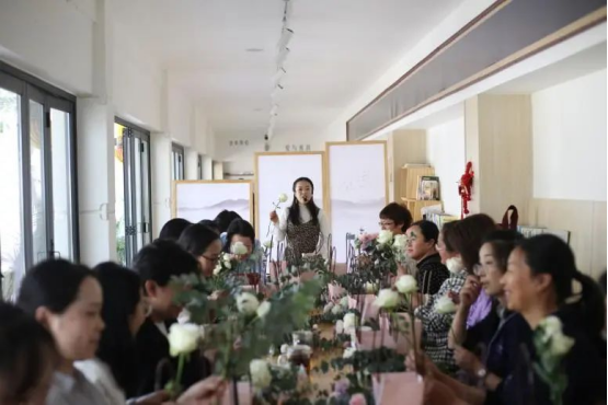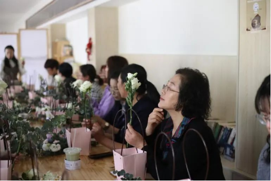 用自己灵巧的双手,利用各色鲜花,配以枝叶点缀,精工裁剪,整合到一起,形成了一幅幅独具匠心的插花作品,展现了作为新时代女性的优雅和美丽。