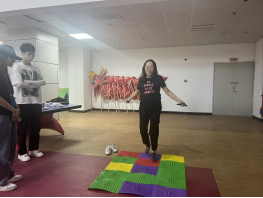 在个人项目中,教师们同样展现出了不凡的实力和风采。在“飞镖”比赛中,他们屏息凝神,精准投掷,飞镖如箭般射向靶心,引来阵阵喝彩;在“疯狂保龄球”项目中,他们力量与技巧并存,一次次将“保龄球”击倒;在“指压板跳绳”项目中,教师们克服指压板带来的不适,轻盈地跳跃着,展现出超凡的毅力与耐力;而在“筷子夹乒乓球”项目中,他们则展现出了细腻的手法和稳定的心态,用筷子巧妙地夹起乒乓球,赢得了观众的阵阵掌声。