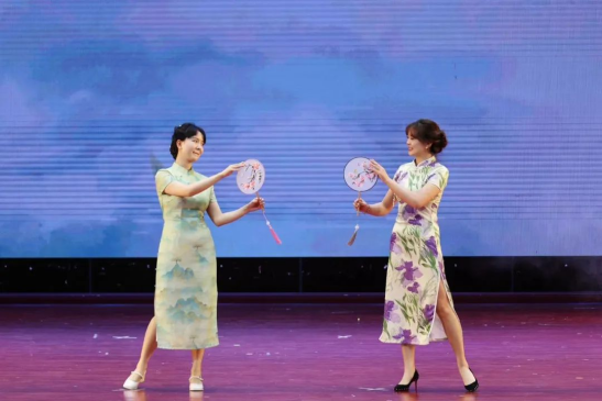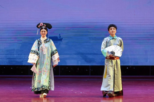 随后,“教师中华传统服装走秀”将节日气氛推向了高潮。教师们身着华美的汉服、唐装、旗袍等8个朝代的传统服饰,款款走来,仿佛穿越时空的古典美人与谦谦公子。他们或婉约柔美,或端庄大气,或英姿飒爽,将中华传统服饰的韵味与魅力展现得淋漓尽致,赢得了在场观众的阵阵掌声和喝彩声。