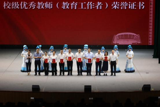 党委副书记、工会主席吉付约古宣读了优秀教师、优秀教育工作者表扬决定。党委委员、副校长王晓东,党委委员、纪委书记沙德康,党委委员、宣传统战部部长邹春芸为优秀教育工作者颁发荣誉证书,党委副书记、工会主席吉付约古,副校长袁顶国,党委委员、组织人事处处长潘开成为优秀教师颁发荣誉证书。