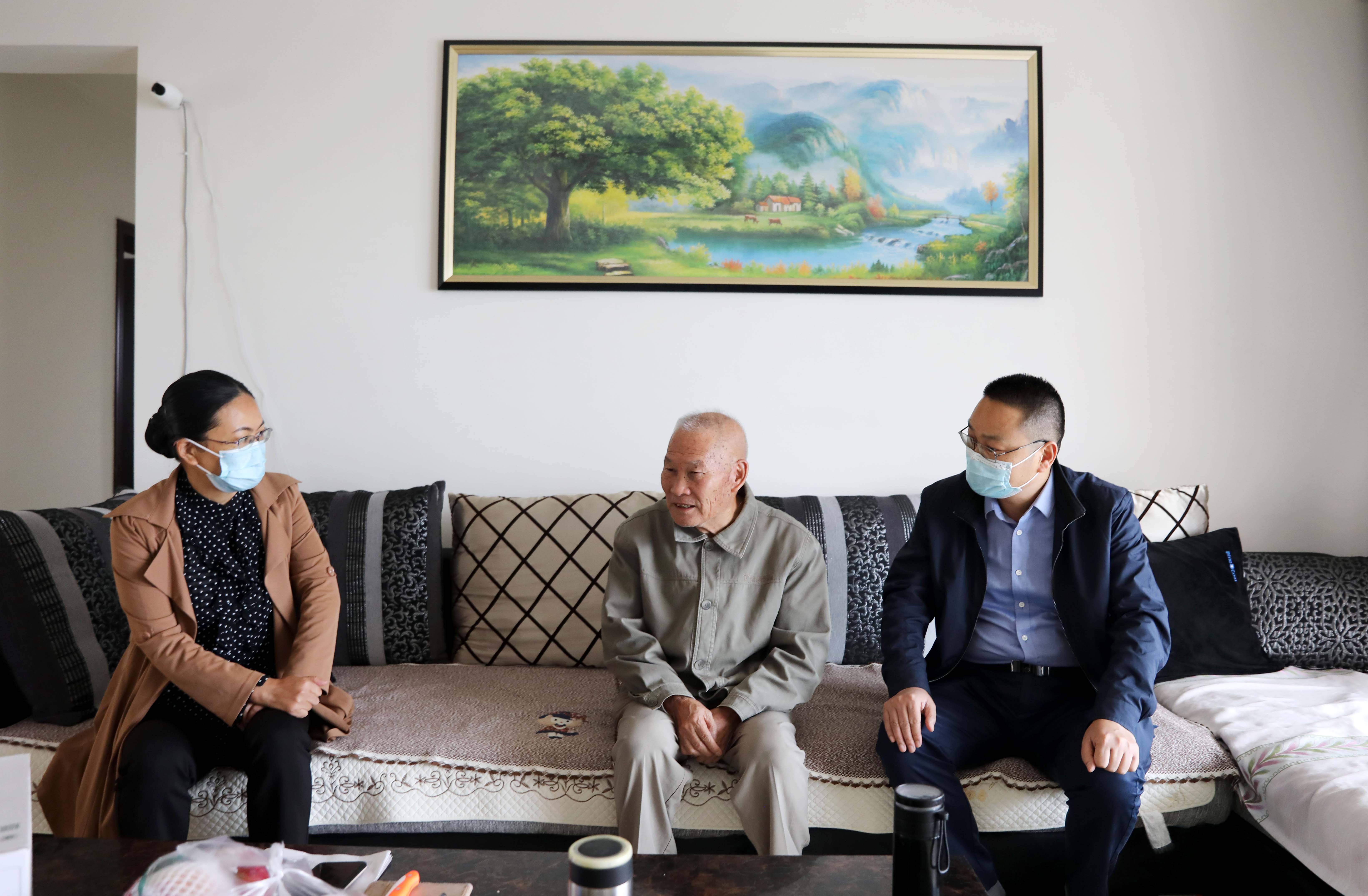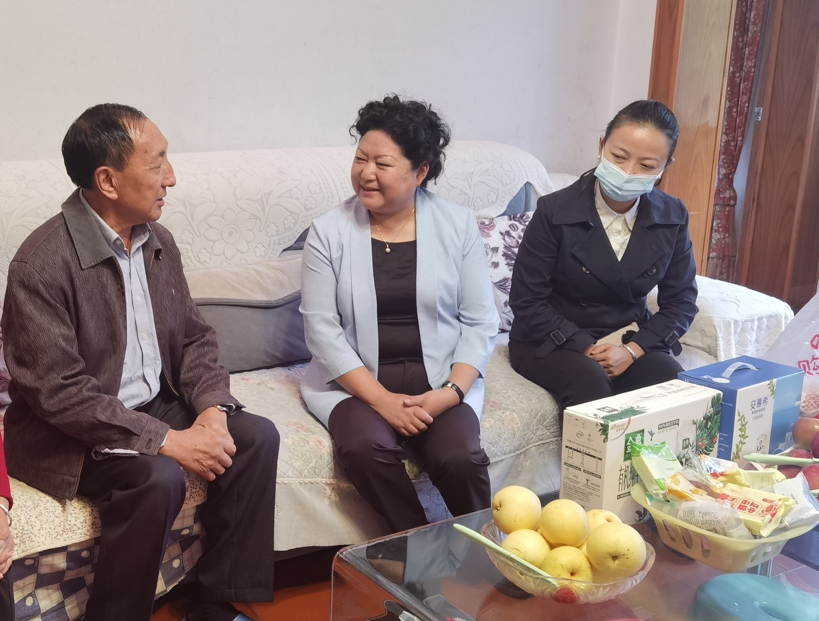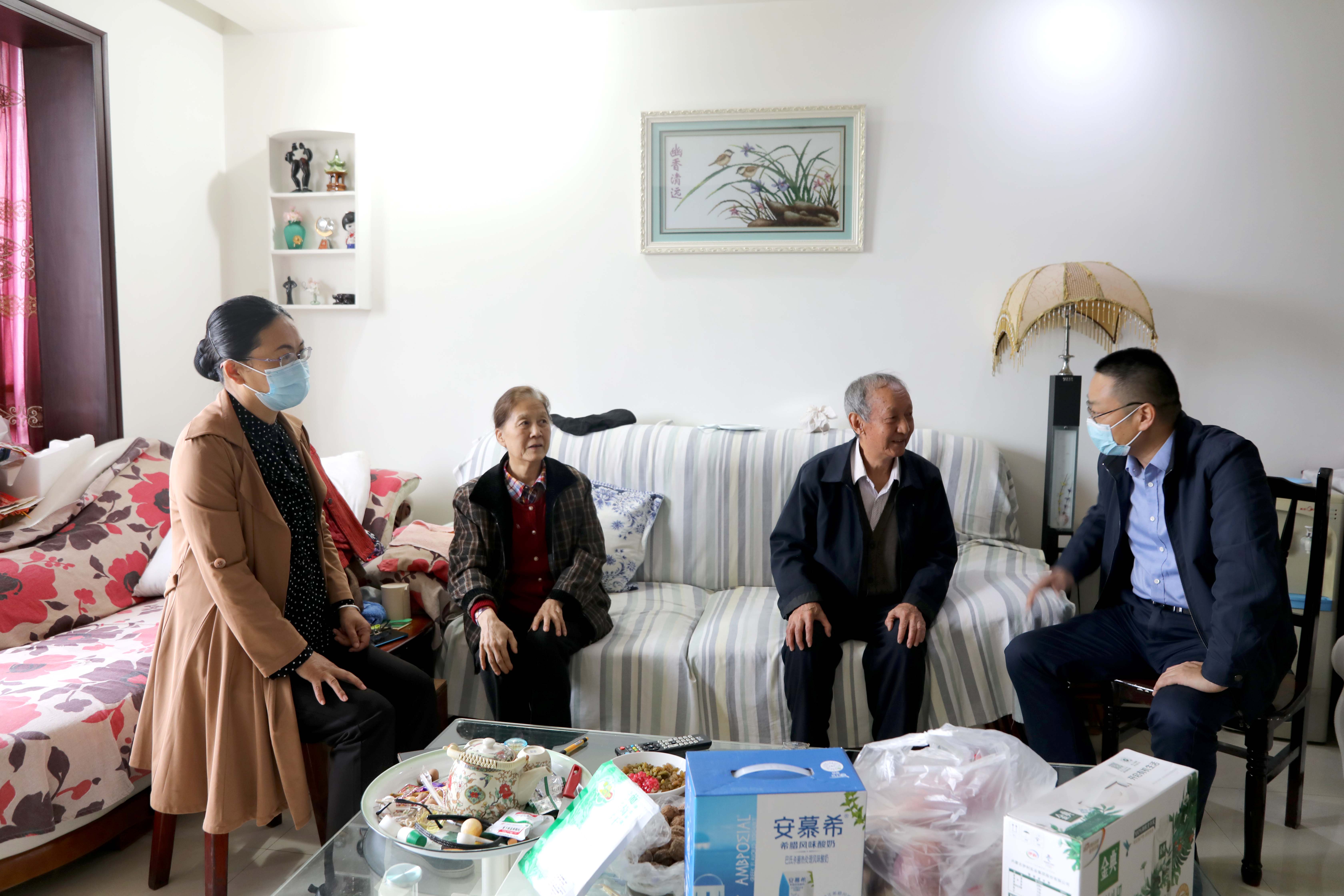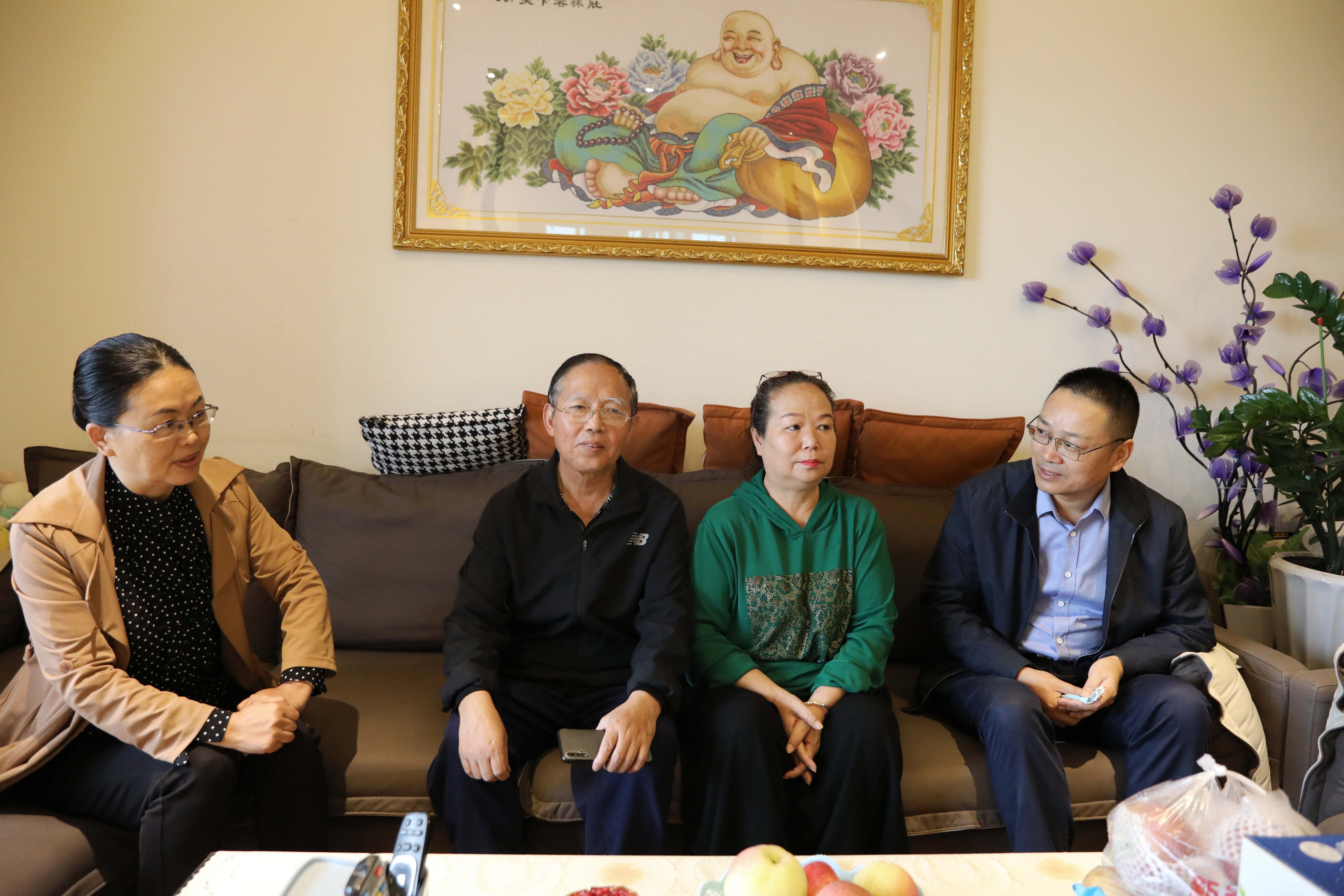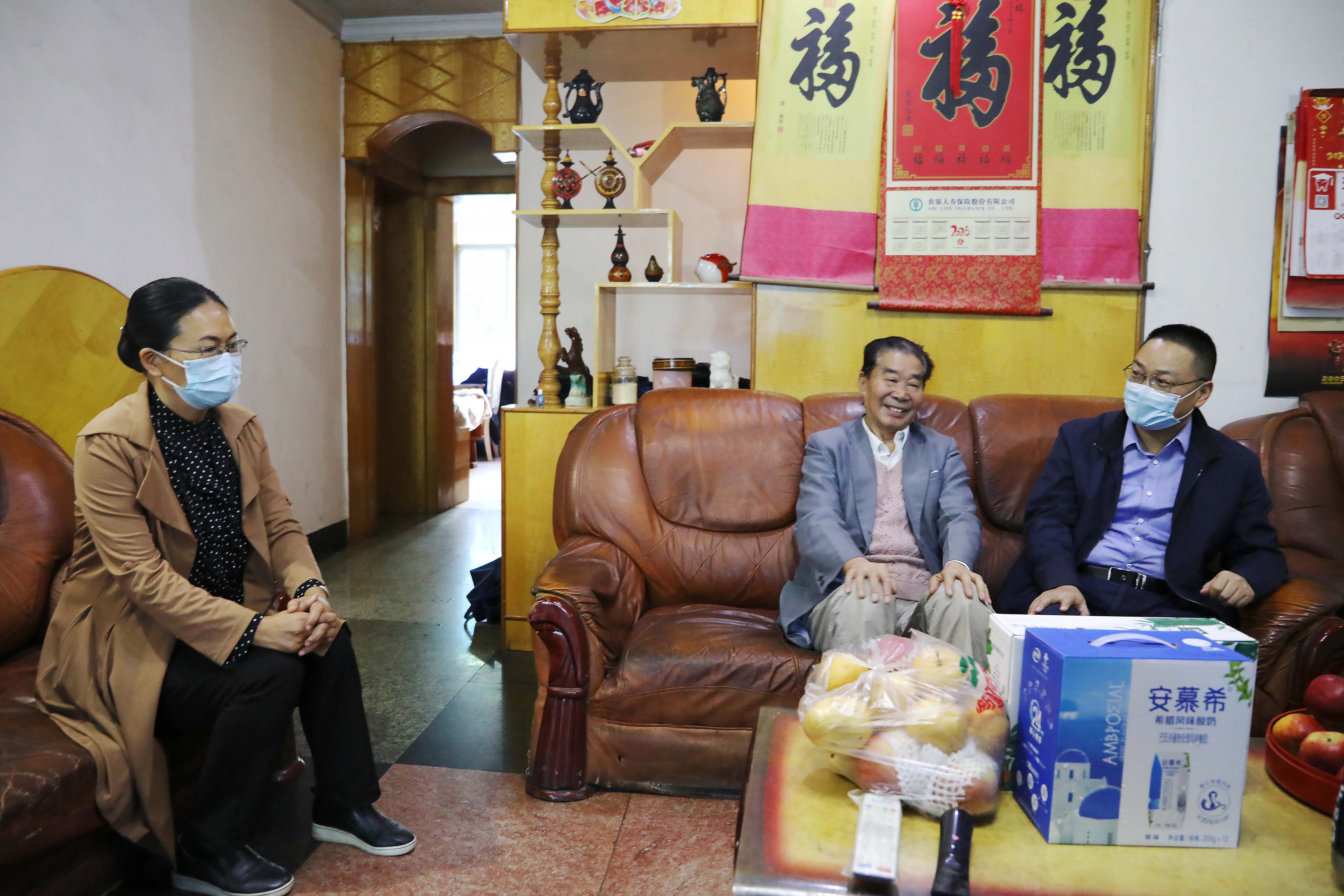 党委书记石芳来到退休教师李成杰家中送上节日的祝福和慰问