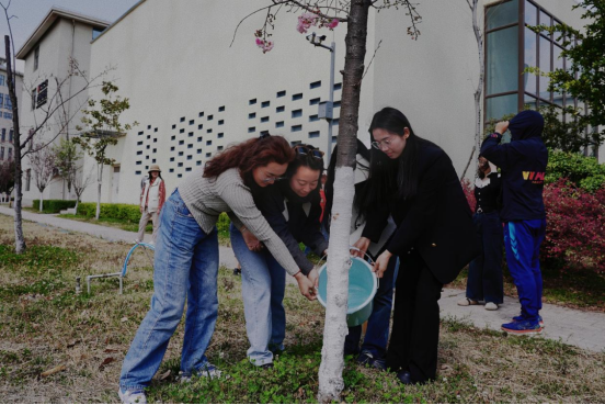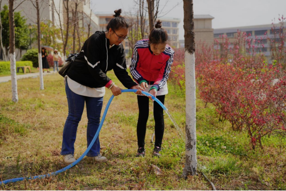 大家齐心协力,除草、浇水、松土,干劲十足。每一滴汗水都浇灌着春天的希望,为校园增添了一抹抹绿意。