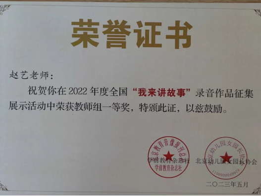 为提升学生专业能力,建立职业自信,充分落实“岗课赛证”的教育教学思想,我校学前教育系皇萍名师工作室组织学生参加了由学前教育杂志社和北京幼儿园女园长协会联合主办的全国“我来讲故事”音频作品征集展示活动并喜获佳绩。
