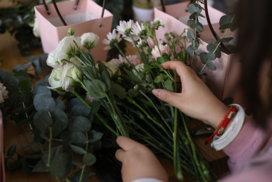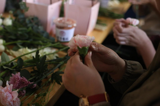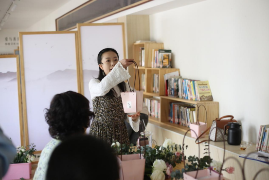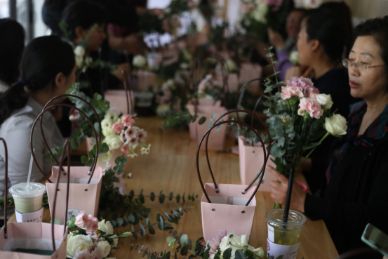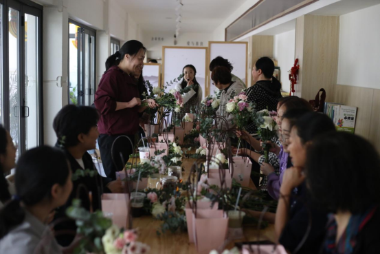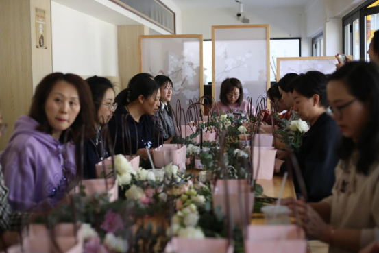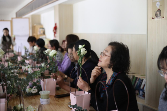 活动中,花艺老师现场讲解插花过程中花卉的选择、搭配技巧及注意事项,并进行了精彩的现场演示。在花艺老师的指导下,每位女同胞都动手制作了一件插花作品。