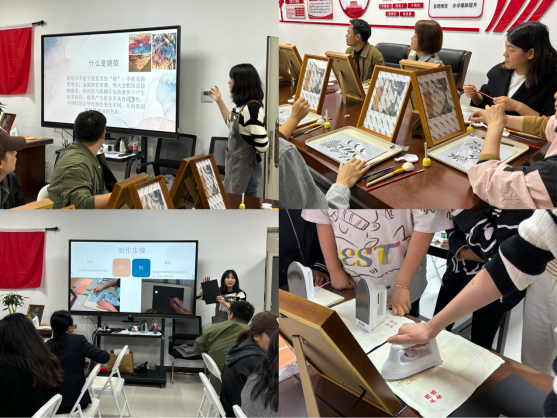 日,“悦心驿站”非遗烧箔画制作活动在1502会议室开展。30余名教职工参与此次活动,大家在了解非遗传统文化魅力的同时,亲身体验了烧箔画手工制作的乐趣。