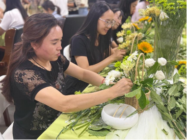 从错落有致的花束到灵动雅致的造型,一朵朵鲜花在教职工手中焕发出别样的生机。大家一边创作,一边分享日常工作与生活趣事,在动手实践中感受花艺之美,也在互动交流中拉近了彼此距离。