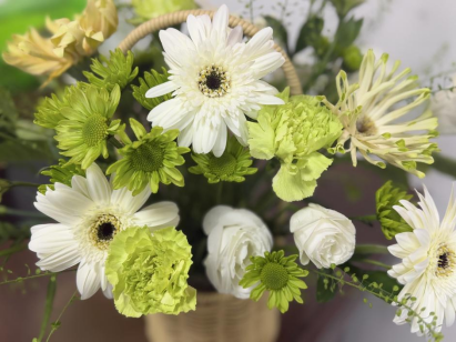 活动现场,花艺老师提前准备了玫瑰、向日葵、洋桔梗等各色鲜花及花器、剪刀、花泥等工具。老师从花材选择、色彩搭配、造型设计等方面进行细致讲解,指导大家修剪枝叶、调整花材层次。教职工们认真聆听、积极尝试,或独自构思创意,或与身边同事交流技巧,现场氛围轻松融洽。