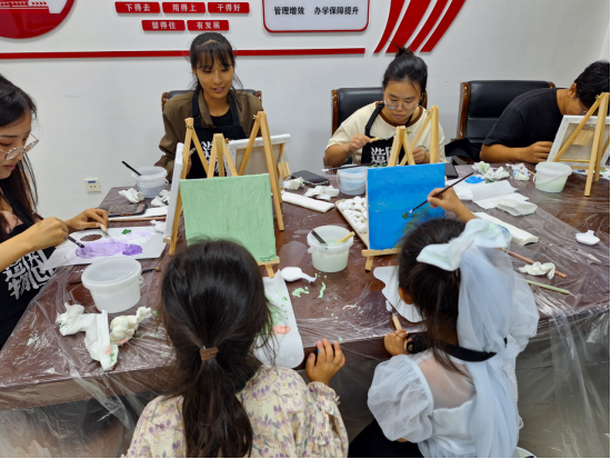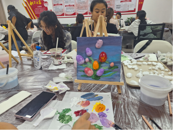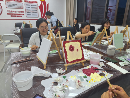 此次活动吸引了大批教职工的积极参与。在专业导师的指导下,大家亲手制作了精美的肌理画作品,不仅锻炼了动手能力,还感受到了艺术创作的乐趣。