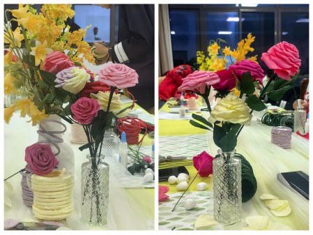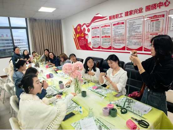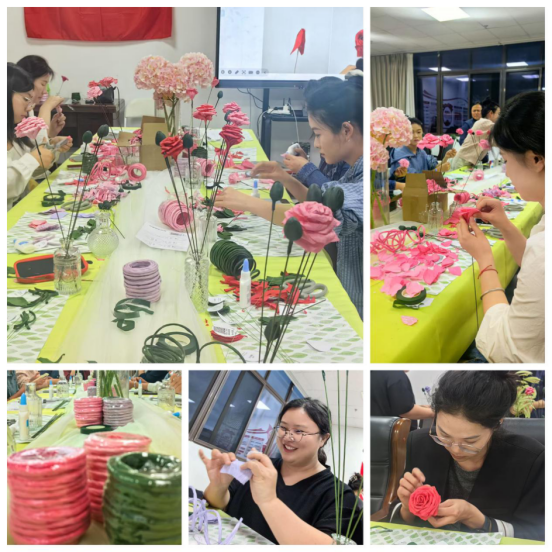 4月29日,校工会组织近30名教职工相聚行政楼1502会议室开展纸藤玫瑰花手作研习活动,以指尖艺术共赴一场浪漫的“花海之约”。