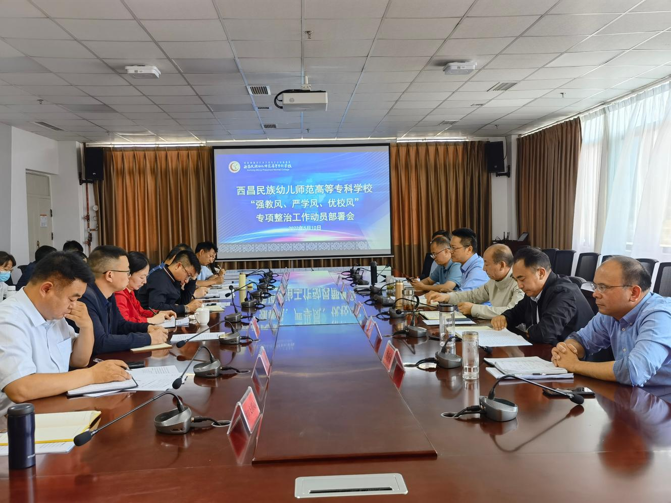 5月10日,西昌民族幼专“强教风、严学风、优校风”专项整治工作动员部署会在行政楼1508会议室召开。相关校领导、党委委员、处室、系部负责人参加,党委副书记、校长赵波主持会议。