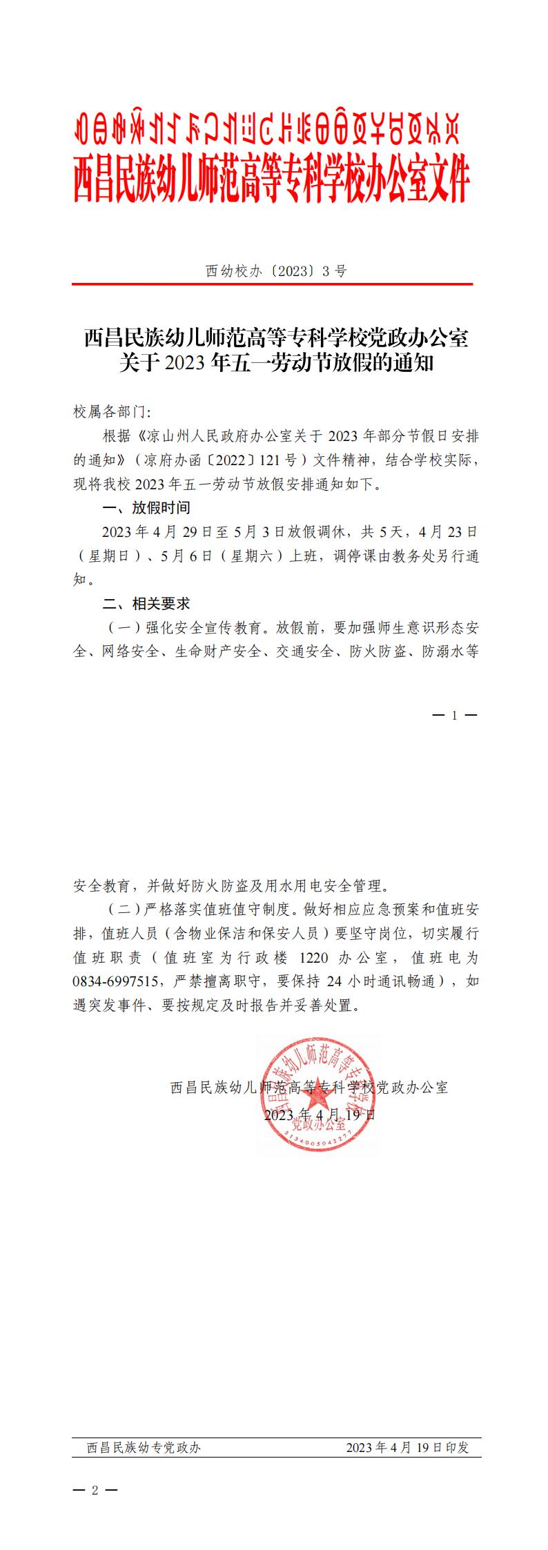 关于2023年五一劳动节放假的通知