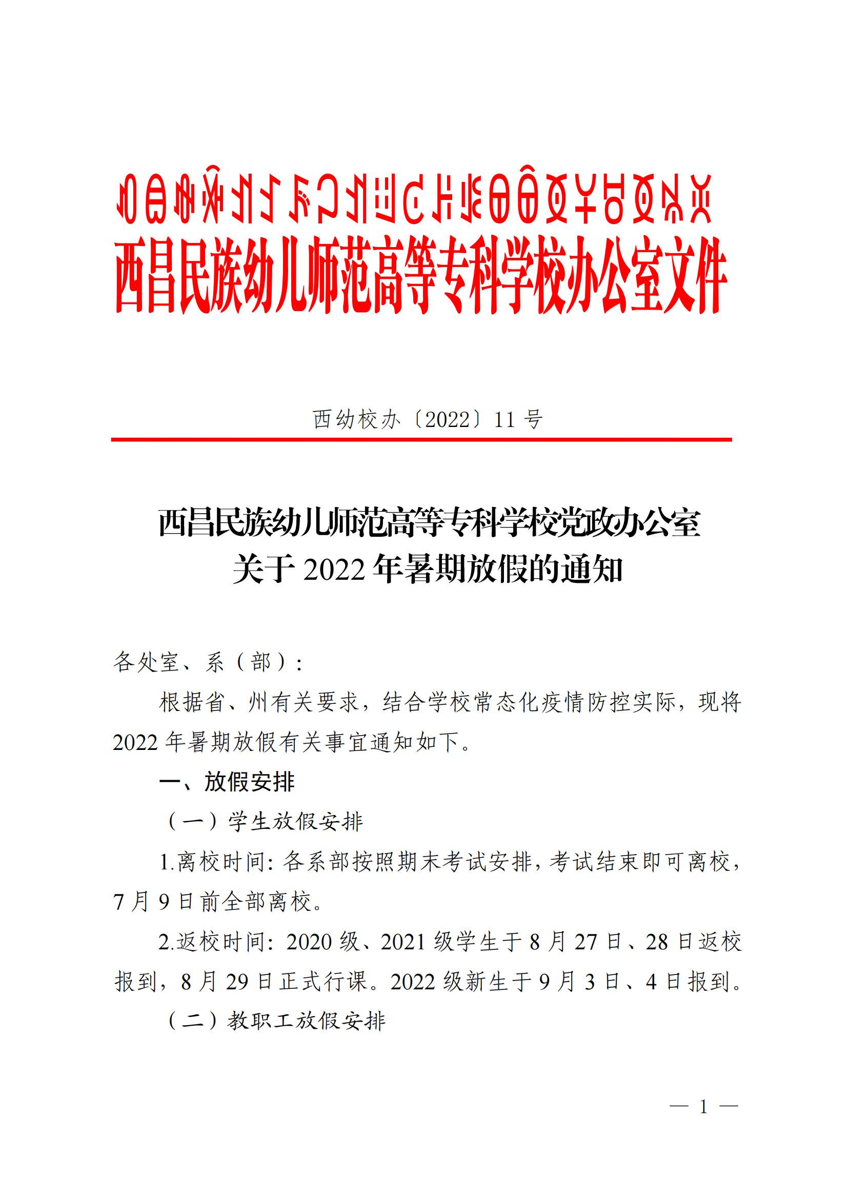 西幼校办〔2022〕11号关于2022年暑期放假的通知