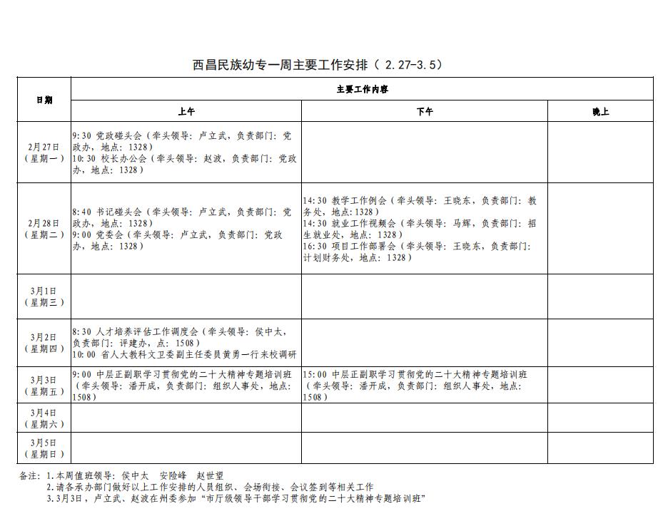 2022-2023下期第一周工作安排(2.27-3.5)