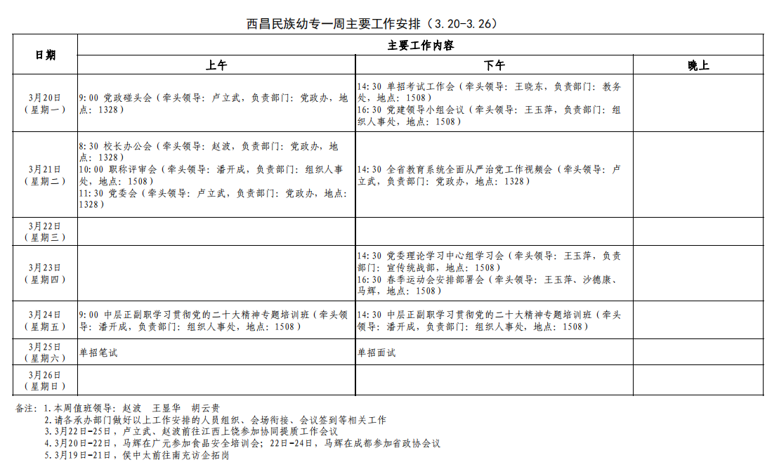 2022-2023下期第四周工作安排(3.20-3.26)