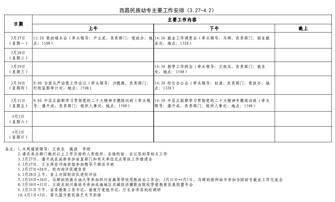2022-2023下期第五周工作安排(3.27-4.2)