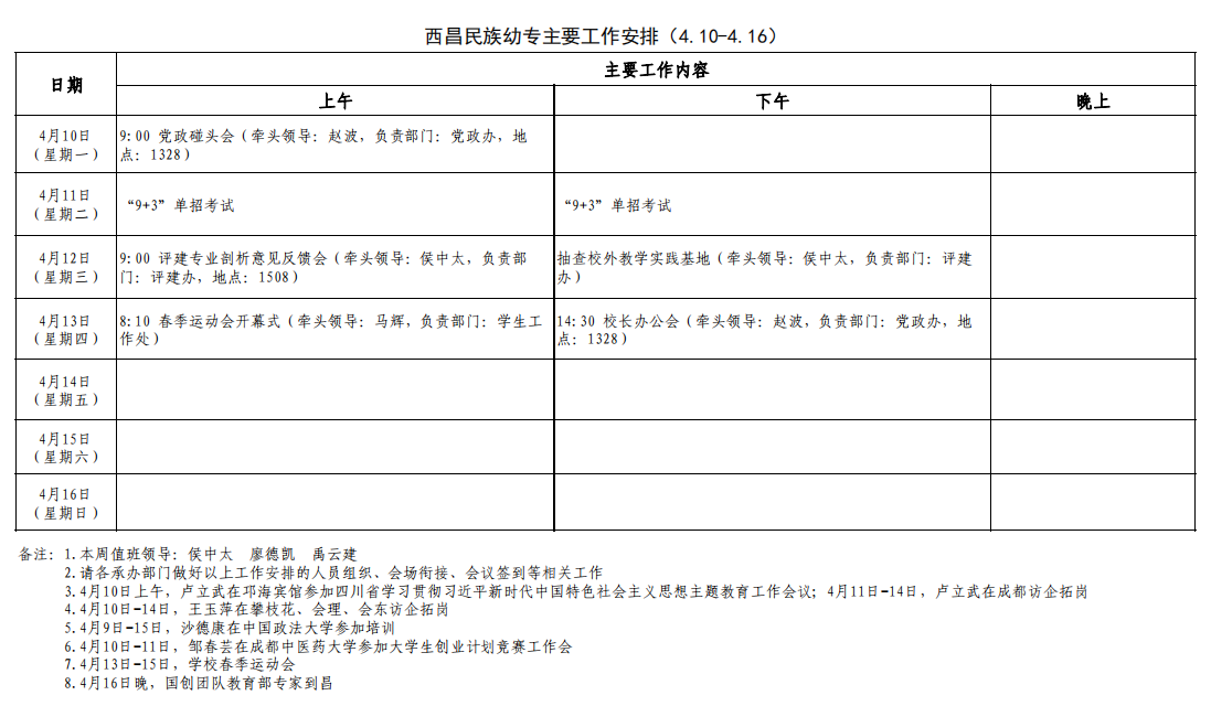 2024春季学期第7周工作安排(4.8-4.14)