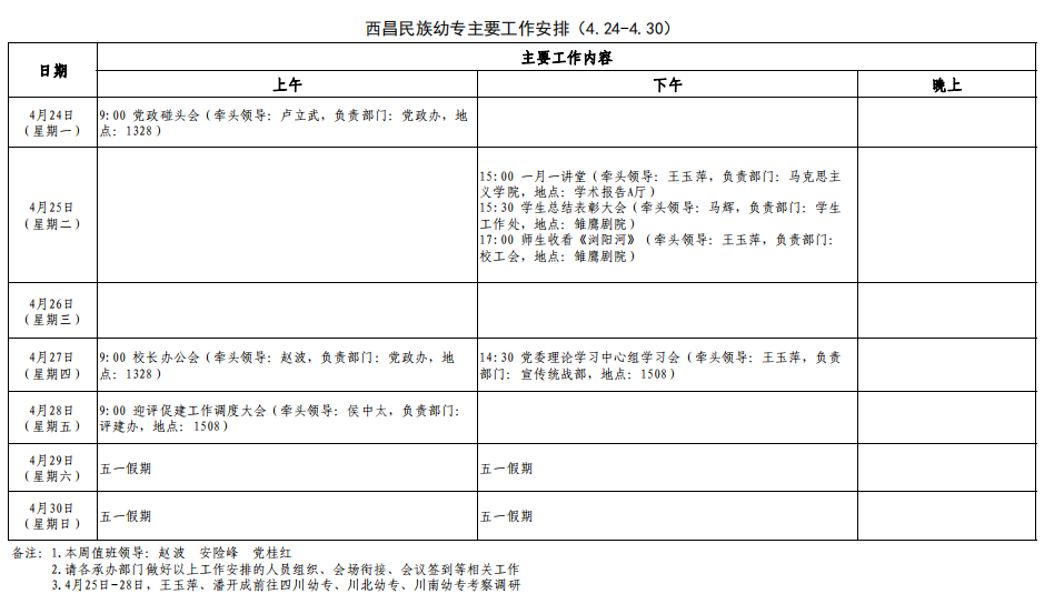 2024春季学期第11周工作安排(5.6-5.12)