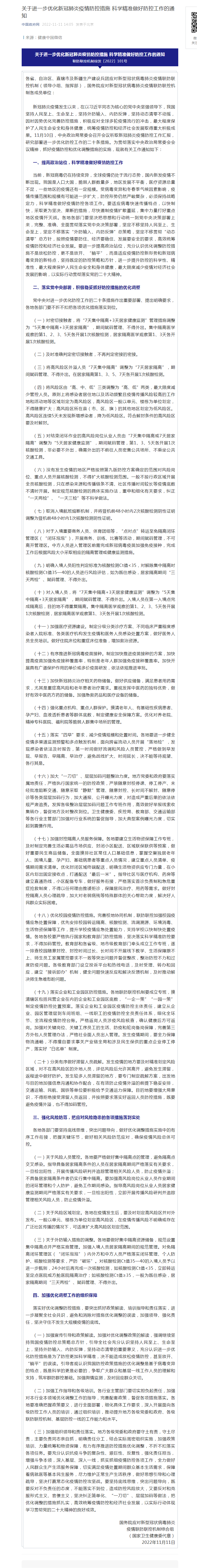 关于进一步优化新冠肺炎疫情防控措施 科学精准做好防控工作的通知 联防联控机制综发〔2022〕101号