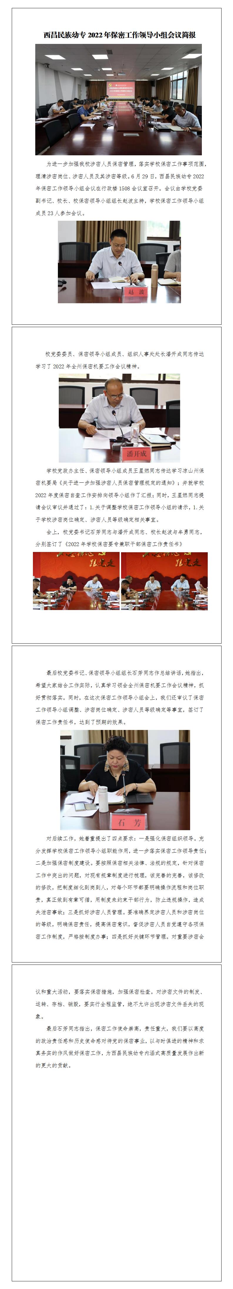 西昌民族幼专2022年保密工作领导小组会议简报