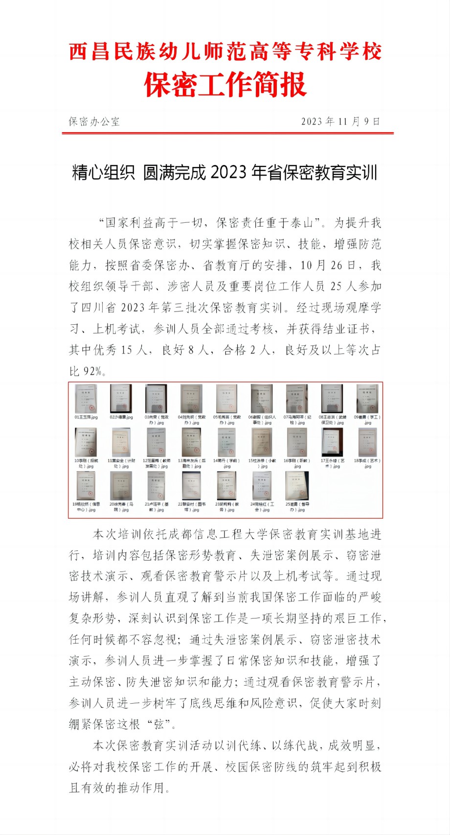 精心组织 圆满完成2023年省保密教育实训