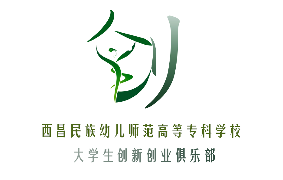 创新创业俱乐部会徽设计灵感来自校徽设计标志——《成长之舞》,一位彝族姑娘乘风破浪,在创业的舞台上舞动青春,重点突出学校的幼师技能特征和学校的关联性。