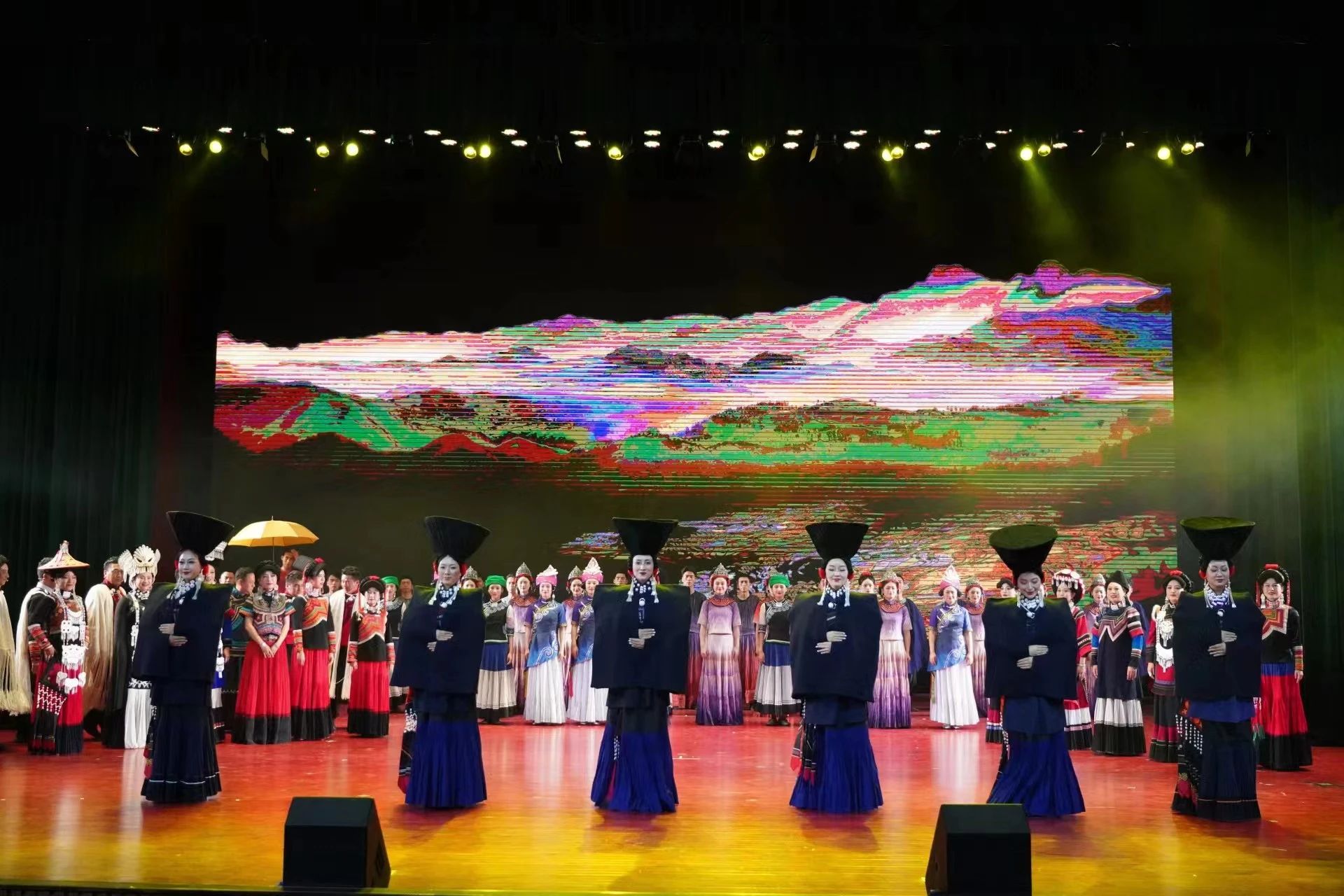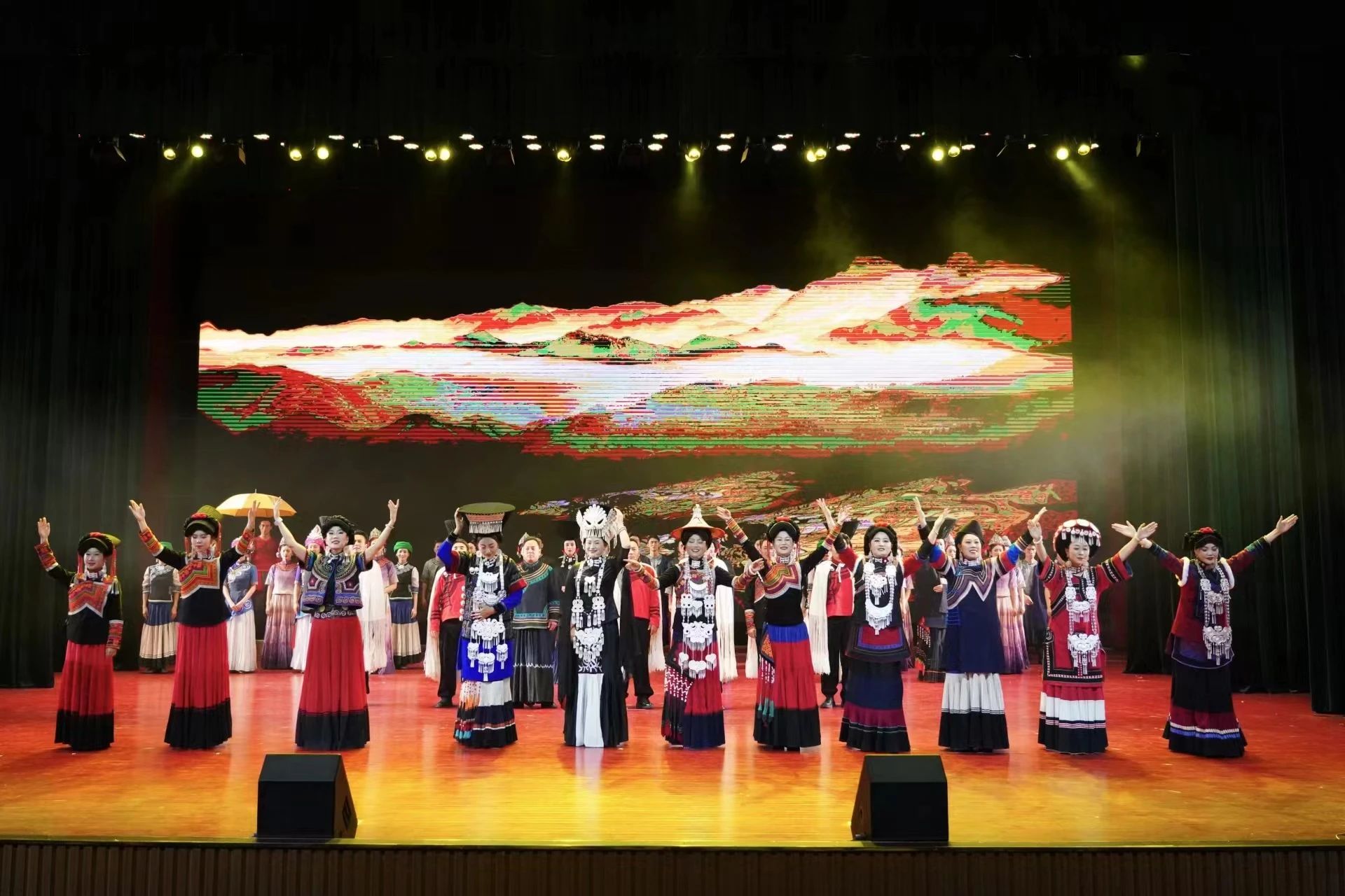 “四川艺术基金2022年度项目展演活动”在我校隆重开演,由凉山歌舞团带来的彝族风情歌舞《山岗上的歌与舞》讲述大小凉山的岁月故事,展现异彩纷呈的彝族风情,让观众享受了一场视听盛宴。此外,校党委书记卢立武,党委副书记、校长赵波,歌舞团团长胡吉伙子莅临现场观看演出。