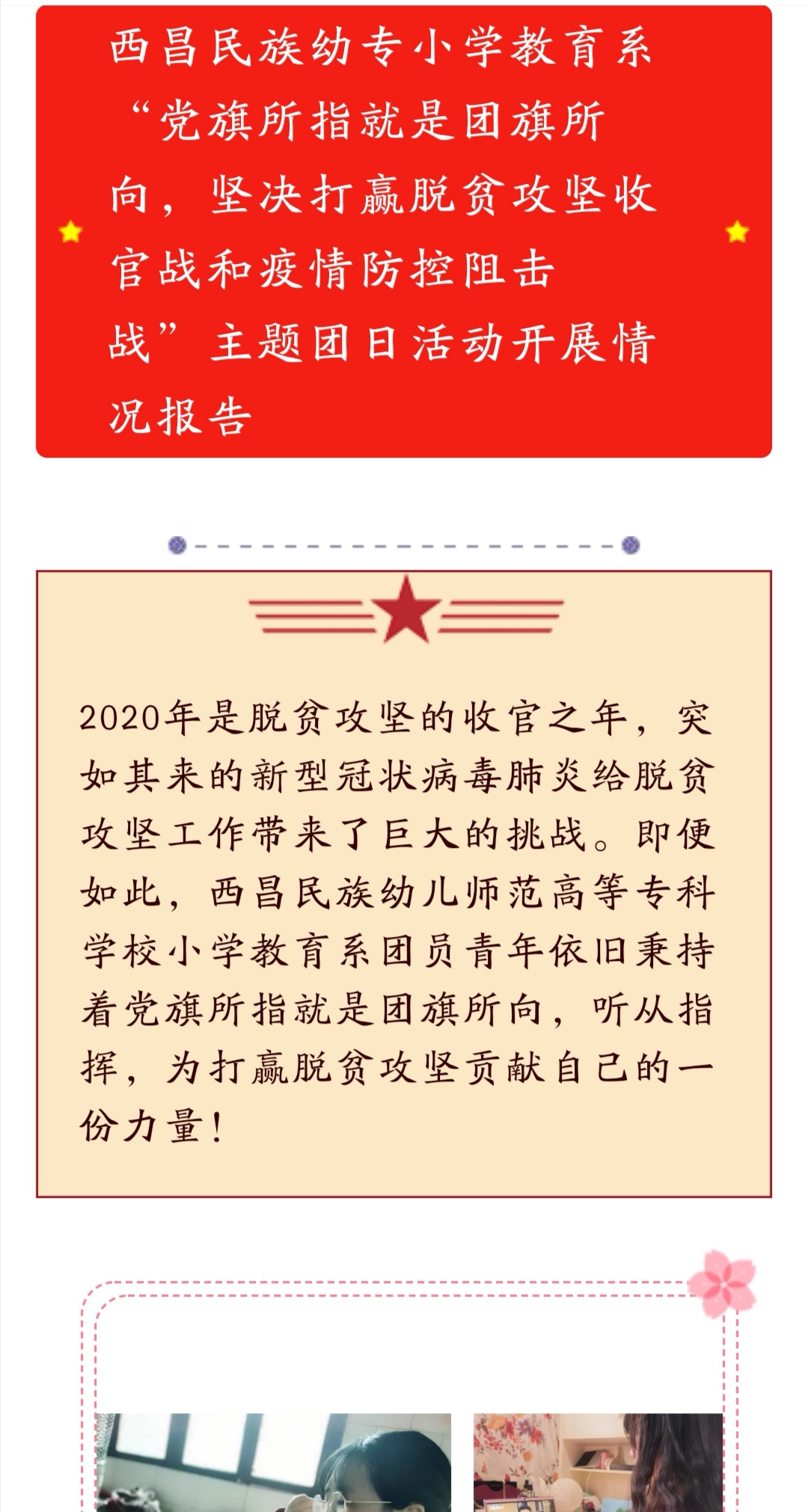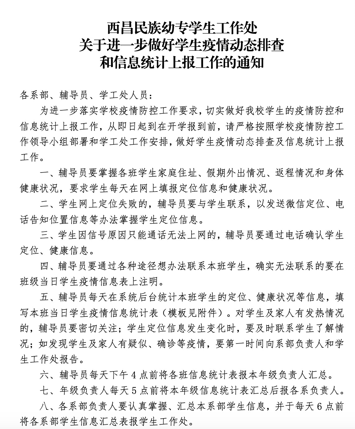 自新冠肺炎疫情防控阻击战打响以来,西昌民族幼专学工队伍严格执行学校各项部署,精细化、人性化管理服务,做实做细学生疫情防控各项工作。